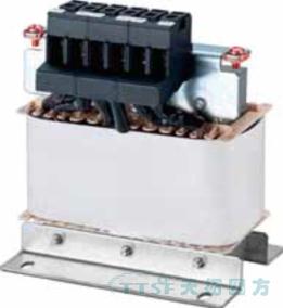进线电抗器可平滑从变频器接收的电流并减小电源电流中的谐波分量。通过减小电流谐波可使整流器中的功率部件以及直流母线电容器减少热量产生并减小对电网的反作用。通过使用进线电抗器可以延长变频器的使用寿命。若变频器额定功率与供电系统短路功率的比例小于1 %,则建议使用进线电抗器来降低电流尖峰。