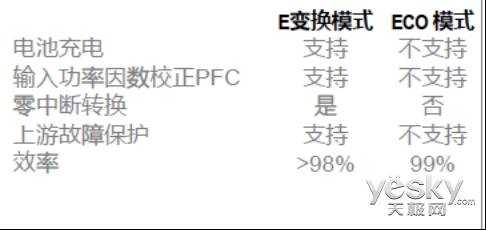 E变换模式,即结合了ECO模式和双变换模式。市电的电能质量在直通的模式下,有时会有谐波影响,或者直接影响到负载,通过E变换模式,能够过滤处理90%以上的谐波,同时可以将UPS输入功率因数补偿为1。虽然ECO模式能效也很高,但ECO模式在市电中断时会有几毫秒到十毫秒的闪断,这是用户无法接收的。而E变化模式可以做到没有任何闪断。据施耐德***介绍,该模式效率高达99.02%以上, 同时电能质量与双变换模式几乎一致。E变换模式能够在高能效状态下提供双转换模式所具有的保护特性。