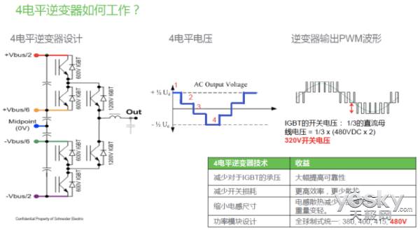 4电平的好处在于,它可以让每一个IGBT单管的承压进一步降低,而IGBT承压降低的一个重要好处在于,可以消除导致IGBT过压故障来大幅提高可靠性:这些故障包括开关瞬态电压 、辐射压力(单点烧毁)、由于电网涌流造成的母线电压过高 。此外,还进一步缩小了电感尺寸,减少开关损耗,从而减少了散热,提高了效率。